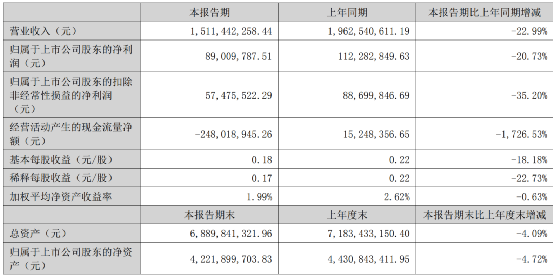 北斗星通7月25日晚间发布半年度业绩报告称,2022年上半年营业收入约15.11亿元,同比减少22.99%;归属于上市公司股东的净利润约8901万元,同比减少20.73%;基本每股收益0.18元,同比减少18.18%。