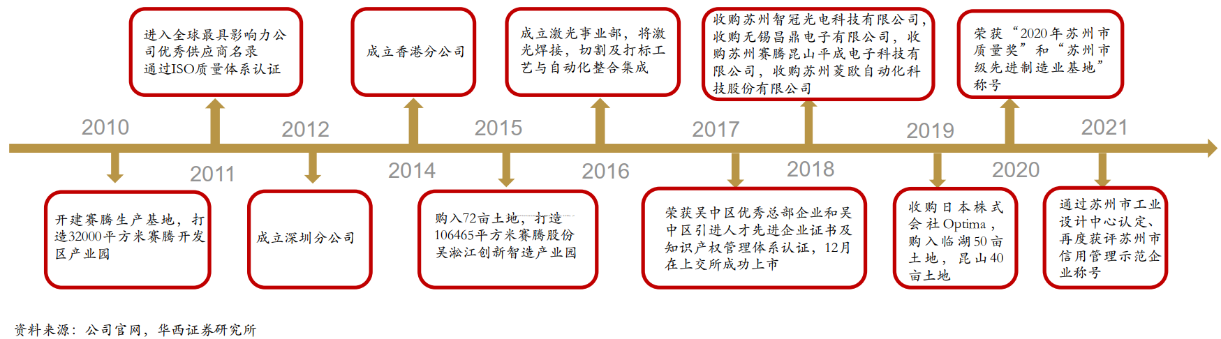 其中,赛腾股份旗下全资子公司苏州团结普瑞玛激光科技有限公司和苏州镭峰激光科技有限公司就有涉及激光设备的研发、生产、销售。