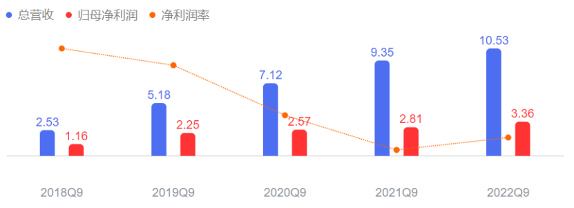 10月25日,帝尔激光发布2022年第三季度报告。据报告显示,公司前三季度营业收入为10.53亿元,同比增长12.65%;归属于上市公司股东的净利润为3.36亿元,同比增长19.52%。基本每股收益为1.98元。其中,第三季度实现营业收入3.88亿元,同比上涨16.07%;归母净利润1.2亿元,同比上涨16.24%。