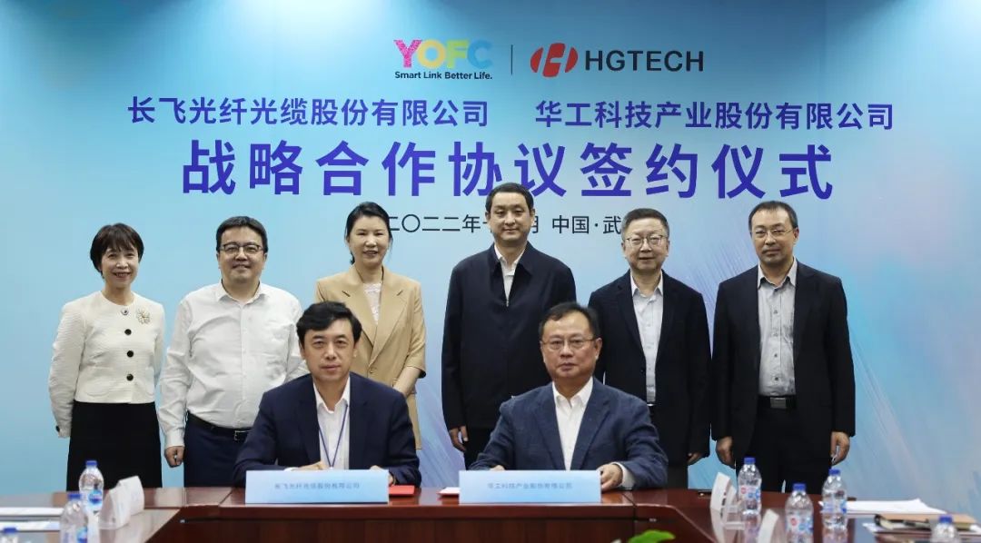 11月11日,华工科技产业股份有限公司(以下简称“华工科技”)与长飞光纤光缆股份有限公司(以下简称“长飞公司”)签署战略合作协议。湖北省经济和信息化厅党组书记、厅长刘海军,武汉市委常委、武汉东湖新技术开发区党工委书记刘洁,武汉东湖新技术开发区管委会副主任冯立,长飞公司执行董事兼总裁庄丹,高级副总裁闫长鹍,副总裁郑昕、聂磊,华工科技党委书记、董事长、总裁马新强,华工科技党委委员、副总裁熊文等出席签约仪式。