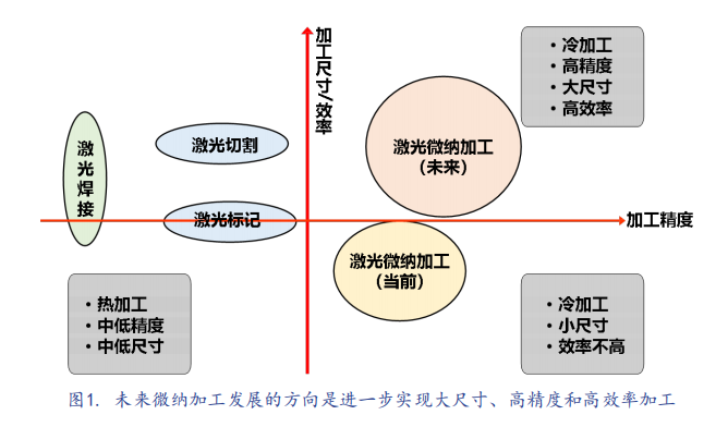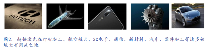 过去十年,激光制造已全面渗透制造业各领域,未来微纳加工 发展的方向是进一步实现大尺寸、高精度和高效率加工。诚然,超 快激光有着很广阔的市场需求空间,在打标加工、航空航天、3C 电子、通信、新材料、器件加工、汽车等更多领域,将孕育出更多 的超快激光应用场景,并需要更高的激光输出功率和单脉冲能量。