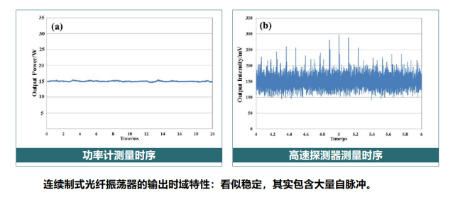 时序指的是功率的时间特性。有人要问,连续激光器的功率不就是一条直线吗?实际上你用微秒的探测器去看,它在时序上会叠加一些自脉冲现象,在连续波的基底上出现“毛刺”,有些毛刺的峰值还比较高,如果不通过科学手段进行抑制,加工的产品就会出现爆点、焊缝不一致等瑕疵。
