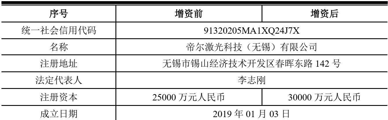 根据公司日前发布的公告,本次募投项目中,“帝尔激光精密激光设备生产项目”及“帝尔激光研发及测试项目”由全资子公司帝尔无锡实施。为协助子公司更好地实施募投项目,公司拟使用募集资金5000万元对帝尔无锡进行增资,并授权公司管理层办理增资后续具体工作。本次增资前,帝尔无锡注册资本2.5亿元,本次增资完成后,帝尔无锡的注册资本将变更为3亿元,仍为公司的全资子公司。