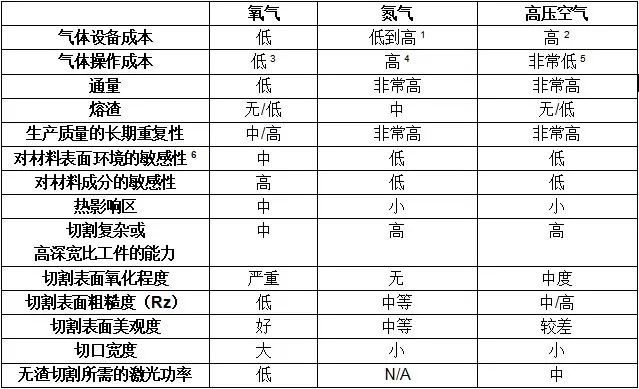 图3:氧气、氮气和空气切割碳钢的优缺点比较