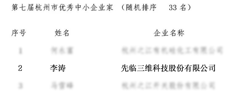 近期,杭州市中小企业协会公布了第七届杭州市最具成长型中小企业和优秀中小企业家评选表彰名单,先临三维入选最具成长型中小企业,先临三维董事长兼CEO李涛入选优秀中小企业家。