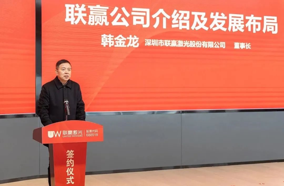 联赢激光董事长韩金龙在发言中表示,非常感谢溧阳政府各级领导为联赢激光搭建“产学研”合作平台。他说今年是全面贯彻落实党的二十大精神的开局之年,全国锚定高质量发展为首要任务,要挺立中国工业脊梁,推动制造业高端化、智能化、绿色化发展。联赢激光作为中国智造的一份子,肩负着时代发展的重任。公司能够取得今天的成就,是我们高度重视研发创新,除自主研发外,还长期与科研院所和高校进行研发合作。同时也取得了丰硕的研发成果并转化为产品,为客户提供了具有国际一流水平的自动化激光焊接解决方案。