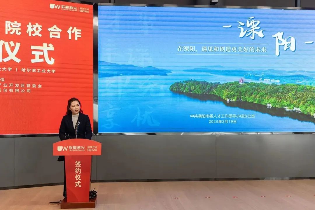 最后,溧阳市委书记叶明华代表市委、市政府对项目的成功签约表示祝贺。他说,联赢与溧阳的6年深度合作,不仅为联赢创造出了江苏省激光行业的重点企业,更为溧阳拓宽产业边界,打造具有全球影响力的千亿级绿色储能产业基地提供了支撑。他指出,科技之光始终是联赢与溧阳前进道路上的同心写照、不变指引。溧阳激光研究院的成立,标志着政企同心迈入新境界、校企合作走向新高度。希望联赢与溧阳继续加强科技领域融合互通的力度,为溧阳产业提升、人才引育、绿色崛起再创优势;各高校教授专家持续深化“产学研用”合作,共同探索出一条互享资源、互补优势、互惠共赢的校企合作新路。