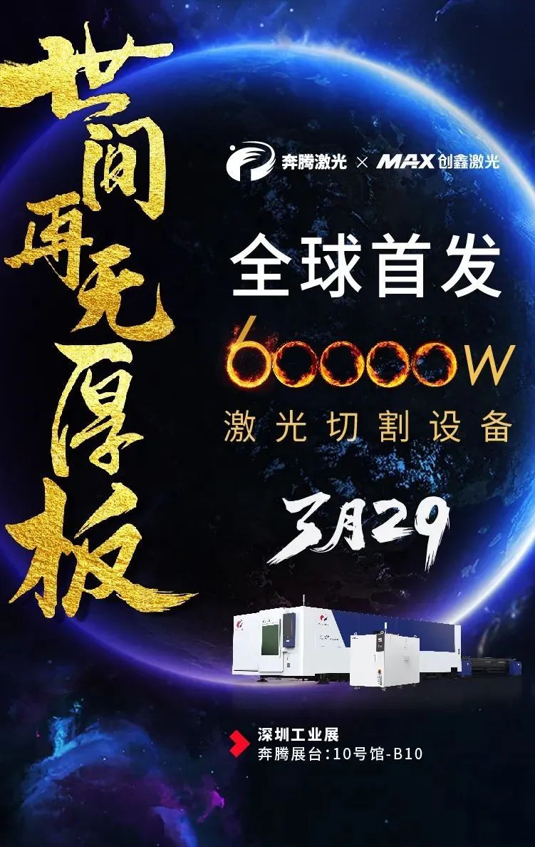 为响应国家高质量发展的战略号召,充分发挥激光这一先进加工技术的优势,推动中国制造业向高质量发展转型,奔腾激光与创鑫激光携手构建战略合作伙伴关系,于2023年3月29日,在深圳联合举行全球首台60kW光纤激光切割机发布会。诚邀各界朋友齐聚一堂,共同见证全球首台60kw激光切割设备闪耀面世,谱写中国激光的新篇章!