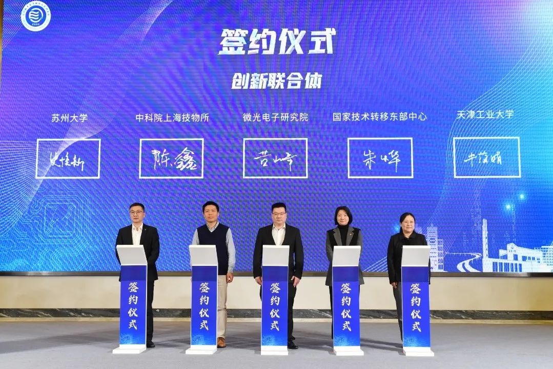 现场举办了签约仪式。上海临港科创集成电路产业协同服务平台、英诺赛科、苏州微光电子融合技术研究院签约“长三角集成电路创新发展与产业协同合作平台”,三方将发挥各自专业领域优势,共促产业创新;苏州微光电子融合技术研究院、中科院上海技物所、国家技术转移东部中心、苏州大学、天津工业大学共同签署创新联合体;苏州微光电子融合技术研究院还与永鼎集团、亨通集团、普源精电、镇江哈工大高端装备研究院签约,成为战略合作伙伴。