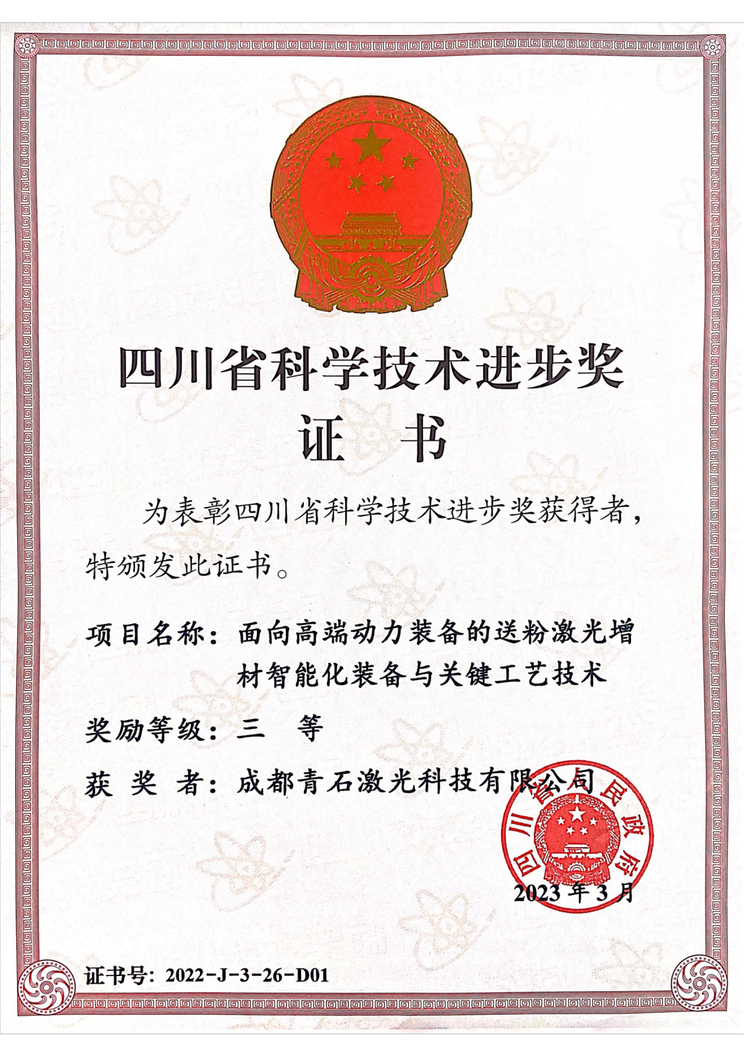 日前,四川省科学技术厅公示了《2022年度四川省科学技术奖拟奖项目》,辉锐成都青石激光科技有限公司(以下简称“成都青石激光”)一项科技成果榜上有名。由成都青石激光、中国长江电力股份有限公司、中国电建集团透平科技有限公司申报的《面向高端动力装备的送粉激光增材智能化装备与关键工艺技术》项目,在四川省科学技术厅科学技术奖评审结果中,荣获2022年度四川省科学技术进步奖三等奖。截至目前,辉锐及旗下控股公司累计获得省部级以上奖项十余项。