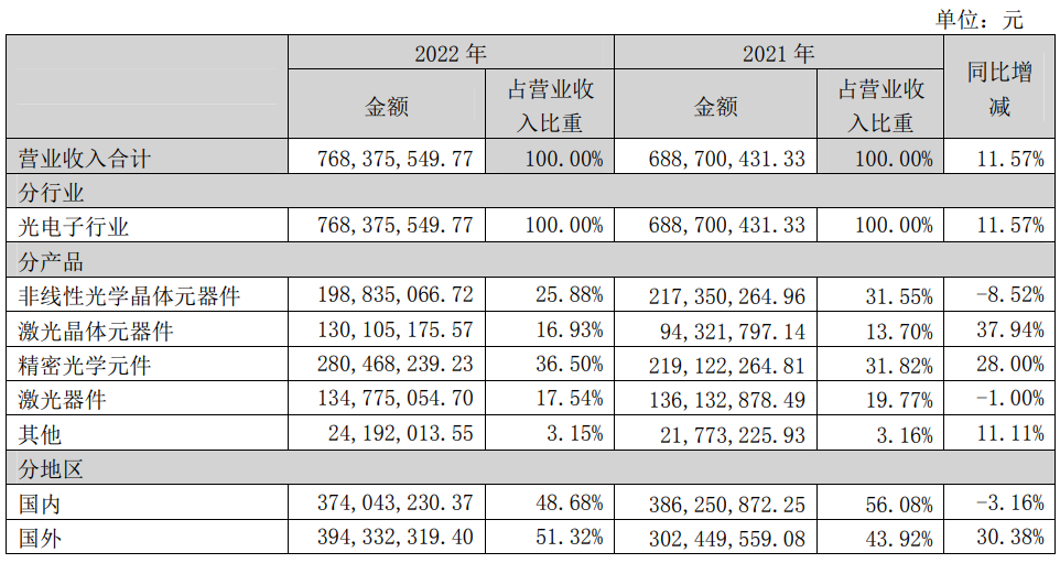 福晶科技2022年实现营收近7.7亿元,同比增长11.57%