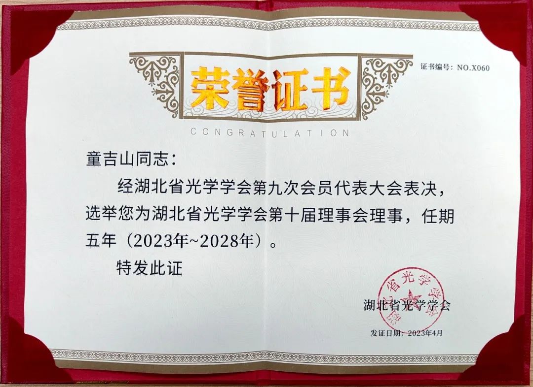 武汉激光之家科技有限公司董事长童吉山受邀出席本次会议,并入选湖北省光学学会第十届理事会理事。