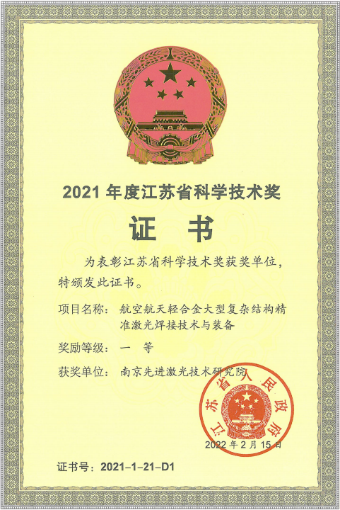 知识产权及技术优势方面,研究院累计获得授权专利200件,其中发明73件。江苏省智能激光制造科技公共服务平台多次获得省市绩效评估优秀等次;近三年,平台服务企业超过400家,四技服务收入超过1.4亿元。2021年,研究院牵头的“航空航天轻合金大型复杂结构精准激光焊接技术与装备”项目获得江苏省科学技术奖一等奖。2022年,研究院入选中国科协2022年度“科创中国”融通创新组织榜单。