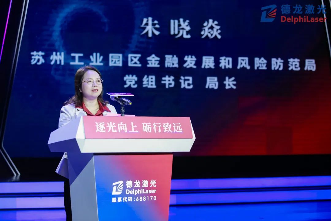 园区金融发展和风险防范局局长朱晓焱在致辞中表示,德龙激光扎根园区18年,不畏艰难、勇于挑战,经过不懈努力,在产品开发、科技创新等方面都取得了令人瞩目的成就。上市以来继续加大研发投入,坚持科技创新,不断探索新工艺新技术,希望德龙激光牢固树立开拓创新、与时俱进的意识,利用资本市场的助力持续强化公司的创新研发能力和核心竞争力,促进园区光电产业链的深化布局,带动园区光电产业高质量发展。