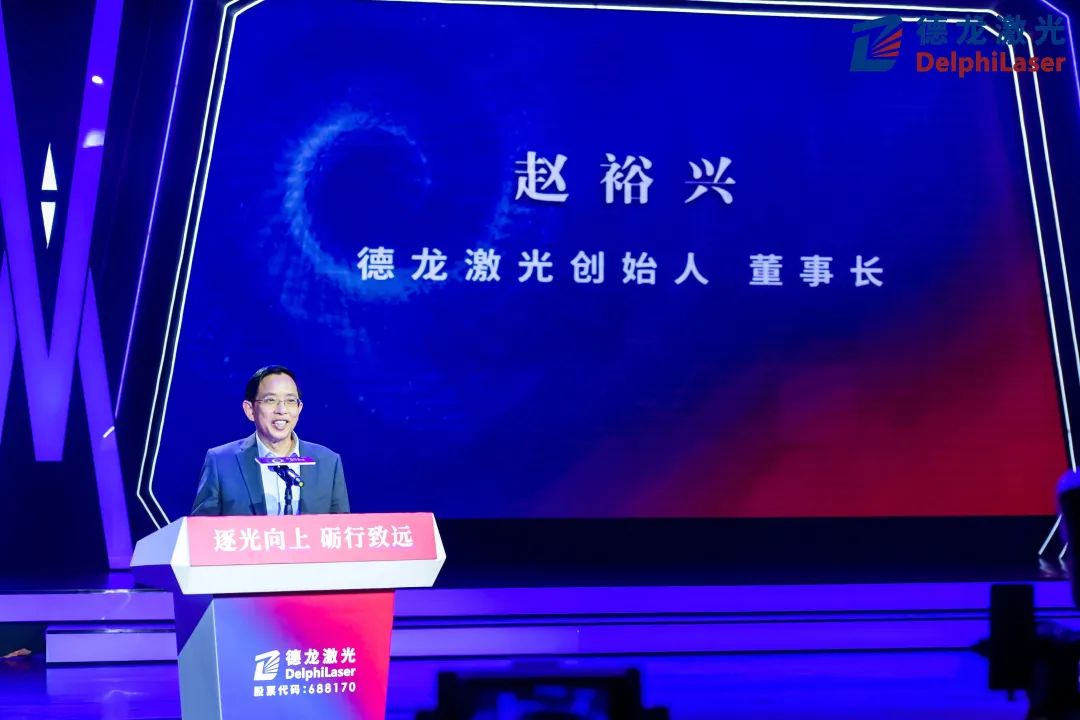 2022年4月29日,德龙激光成功在上海证券交易所科创板挂牌上市,德龙激光创始人、董事长赵裕兴首先对出席活动的各界嘉宾表示热烈的欢迎和衷心的感谢。十八年来,德龙激光经历了探索期、快速发展期,也遇到了瓶颈期,但最终突破了瓶颈,迈入更大的发展阶段,成功登陆资本市场,离不开各级政府、所有股东、所有客户、供应商和合作伙伴等的大力支持。在致辞中,赵裕兴表示,德龙激光自创立以来,一直专注于激光精细微加工领域新产品、新技术、新工艺的研究和开发。聚焦于半导体、新型电子、新能源及科研等应用领域。未来,德龙激光将继续不忘初心,借助资本市场平台,在苏州工业园区这块沃土上,逐光向上,砺行致远,为全体股东创造更高的经济回报、为员工提供更加广阔的发展平台、为社会的进步做出更大的贡献!