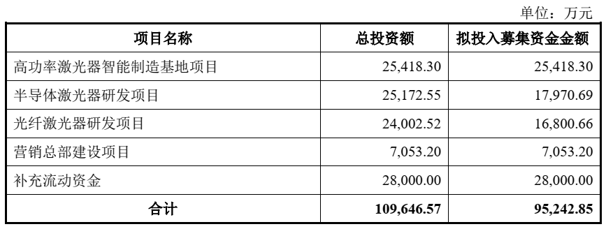 据“激光之家”获悉,凯普林本次发行募集资金9.52亿元主要投向为“高功率激光器智能制造基地项目”“半导体激光器研发项目”“光纤激光器研发项目”“营销总部建设项目”及“补充流动资金”。