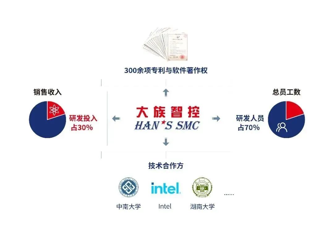 大族智控长期致力于控制技术和数控系统的研究,在该领域已经获得了300余项知识产权,其中美国发明专利2项,国内发明专利60余项,实用新型专利40余项,外观专利20余项,计算机软件著作权100余项。专利技术覆盖了数控系统、工业软件、视觉系统、调高系统、功能硬件等领域。