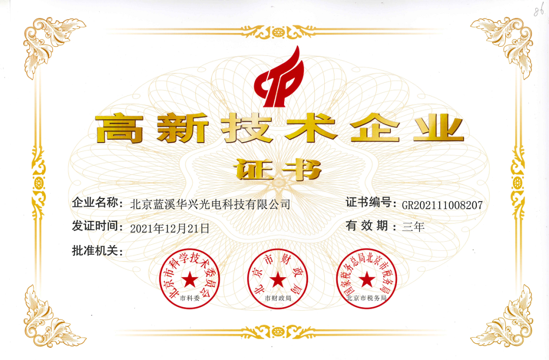 北京蓝溪华兴光电科技有限公司成立于2018年9月,是一家专注于半导体激光器应用领域的国家高新技术企业。主要经营范围为半导体激光器技术开发和服务,公司始终坚持自主研发创新,已获得自主研发知识产权24项,发明专利2项,软件著作权8项,实用新型14项。主要专注于面向行业应用的半导体激光器应用技术开发研究,提供标准型和定制化的半导体激光器系统和测试老化设备等。半导体激光器主要服务于激光塑料焊接、激光锡焊、激光照明、激光雷达、激光医疗、激光武器、激光科研等行业领域;老化测试设备主要服务于半导体激光器生产制造厂家。