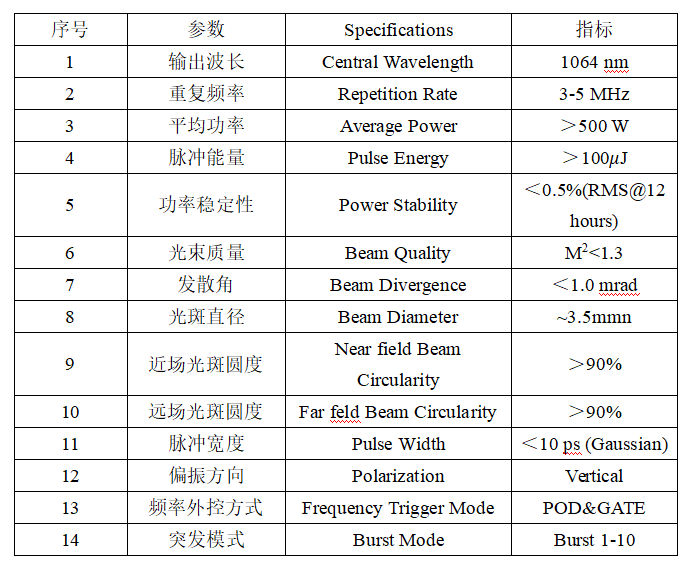 4. 盛雄激光500W高功率红外皮秒固体激光器参数: