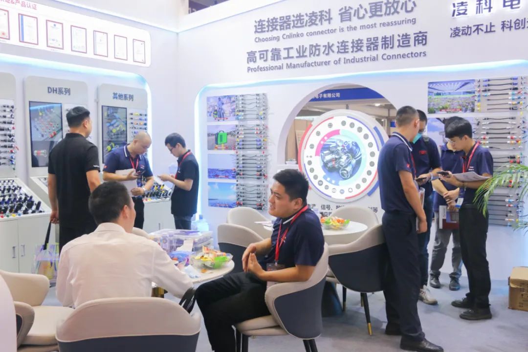 在这些络绎不绝的参观者中,有不少是海外的潜在客户群体,他们也是对凌科极具匠心和高品质的防水连接器产品赞誉有加,并互加联系方式,以期后续合作。