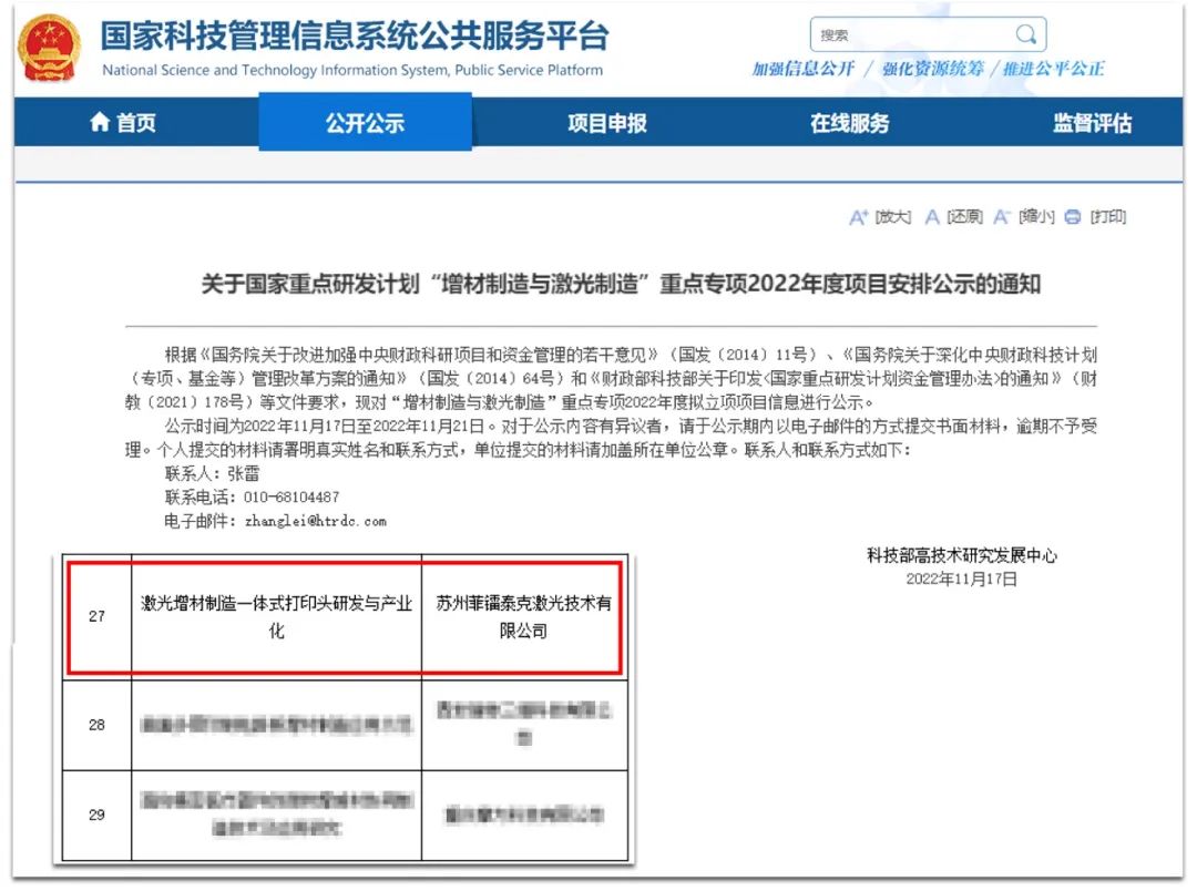 菲镭泰克拥有较强的研发落地能力和综合技术优势,与下游多个客户密切合作,提供从研发到产品的激光3D动态聚焦系统解决方案。2022年12月13日,公司获得科技部国家重点研发计划“增材制造与激光制造”重点专项项目立项通知,担任“激光增材制造一体式打印头研发与产业化”项目牵头单位。