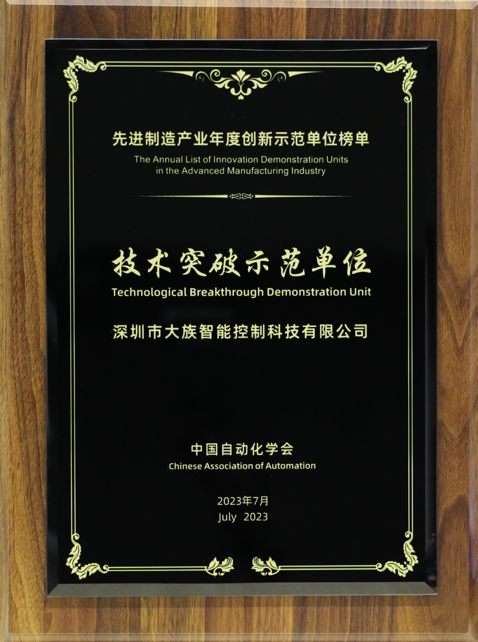 大族智控凭借在智能控制技术方面的创新性和数控技术国产化方面的重要贡献,上榜中国自动化学会先进制造产业年度创新示范单位榜单,成为控制技术领域“技术突破示范单位”。