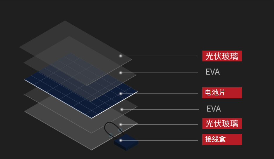 常规的光伏电池组件盖板使用光伏玻璃,双玻组件的盖板和背板都使用光伏玻璃,且背板光伏玻璃必须在特定位置打孔才能把光伏电池组件的电流导线引出到接线盒。