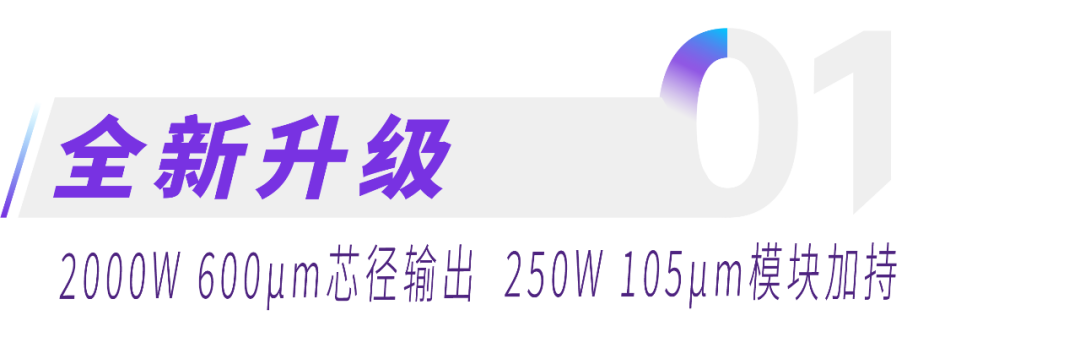 作为一款应用级的落地产品,2000W蓝光新品采用了600μm芯径,单模块105μm光纤输出,功率达到250W,比肩行业领先水平。蓝光新品的推出,将全面提升用户在复合焊接上的使用体验,更大程度地释放生产力,提升加工效率。