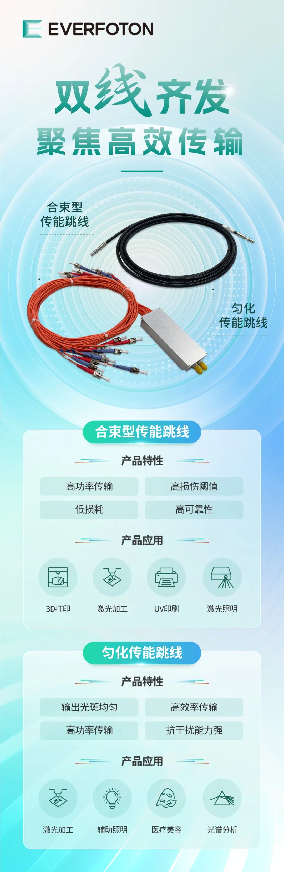 为满足激光行业高效传输的需求,长飞光坊(武汉)科技有限公司(以下简称“长飞光坊”)依托在特种光纤领域强大的研发实力,结合相关工艺平台,相继开发了两款传能跳线新品——合束型传能跳线和匀化传能跳线。