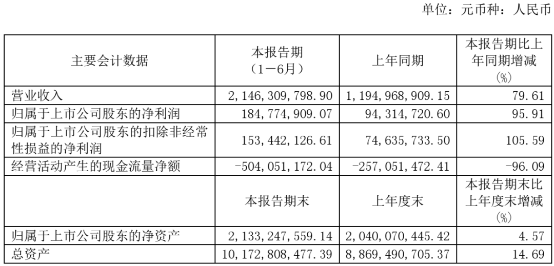 昨日晚间,海目星发布2023年半年报,报告显示,2023年上半年度公司实现营业收入21.46亿元,比去年同期上升79.61%;实现归属于母公司所有者的净利润1.85亿元,比去年同期上升95.91%;每股收益0.92元,比去年同期上升95.74%。