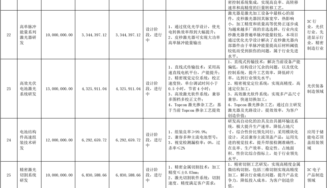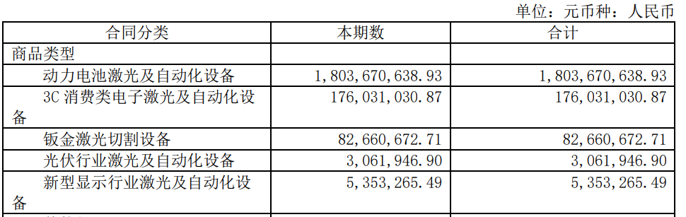 公司不断打磨激光及自动化的核心应用技术,深度挖掘激光及自动化各行业的应用需求,紧跟行业发展趋势,把握客户需求,产品品质逐步获得客户认可,在手订单规模持续增长,报告期内动力电池业务验收项目同比增加,该类主营业务实现收入18.04亿元,同比增长109.98%。报告期内,公司光伏业务获得获得了晶科能源、天合光能、通威股份、弘元绿能,捷泰、正泰、阿特斯、合盛硅业、协鑫等知名客户的订单,截至本报告披露日,公司TOPcon激光一次掺杂设备已签订合同350GW+。