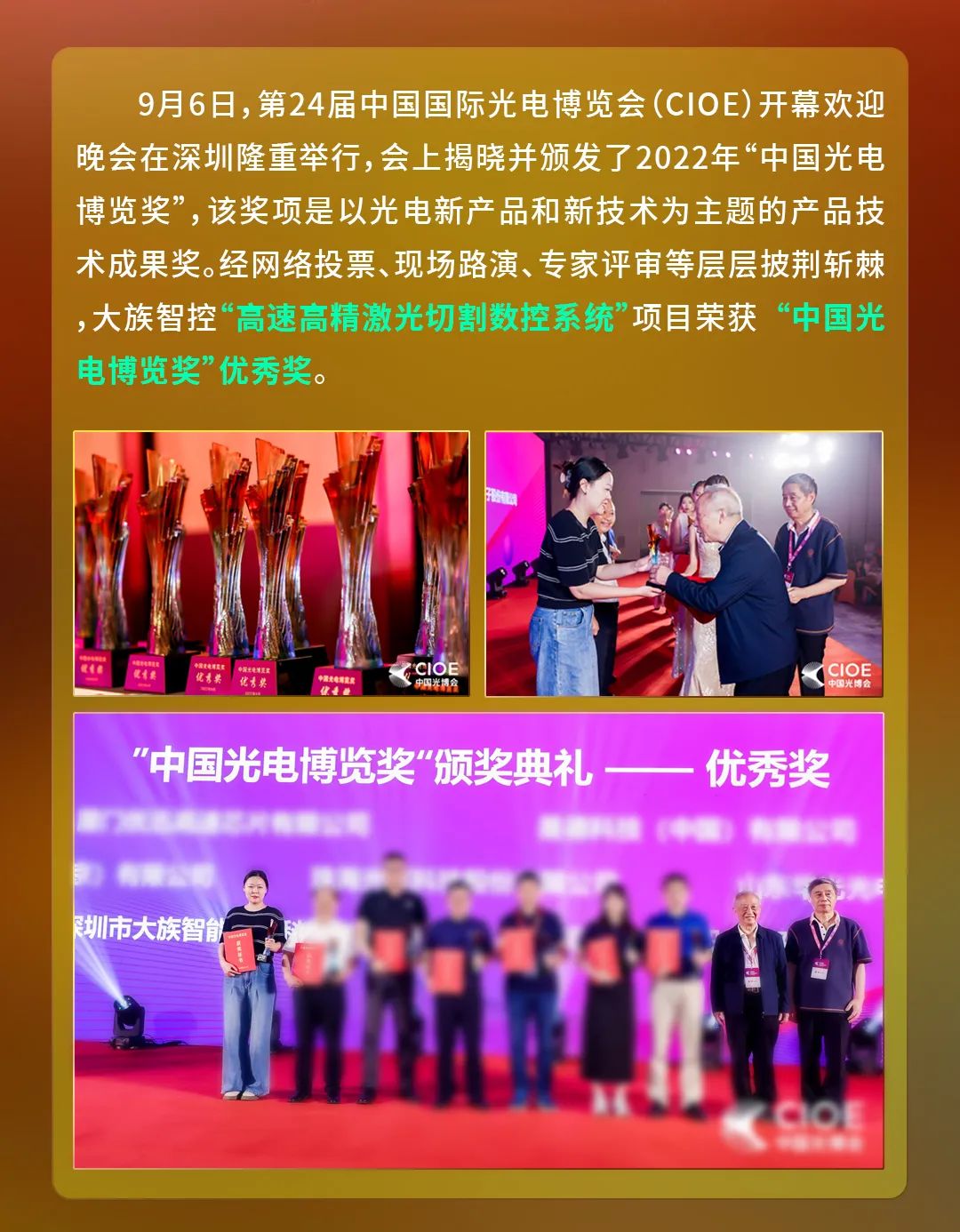 大族智控这个数控系统项目荣膺2022“中国光电博览奖”优秀奖