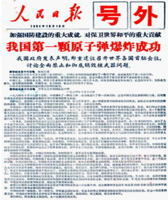 图|人民日报刊登我国第一颗原子弹爆炸成功