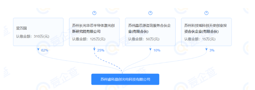 近日,苏州睿科晶创光电科技有限公司成立,法定代表人为梁万国,注册资本500万元,经营范围包含:电子专用材料研发;光电子器件制造;电子元器件零售;光学仪器制造等。企查查股权穿透显示,该公司由长光华芯全资子公司苏州长光华芯半导体激光创新研究院有限公司等共同持股。