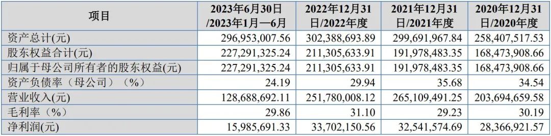 财务方面,于2020年度、2021年度、2022年度、2023年1-6月,莱赛激光实现营业收入分别约为2.04亿元、2.65亿元、2.52亿元、1.29亿元人民币;净利润分别约为2836.69万元、3254.16万元、3370.22万元、1598.57万元人民币。