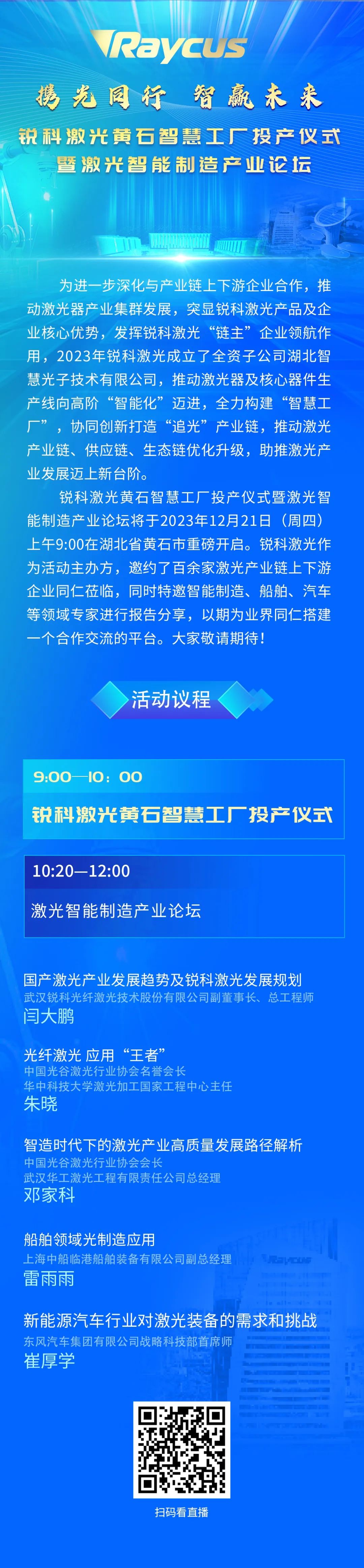 重磅预告 | 锐科激光黄石智慧工厂投产仪式暨激光智能制造产业论坛即将开启!
