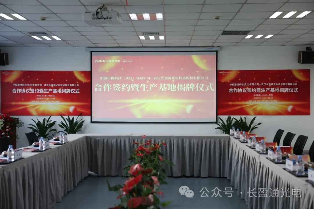 2024年1月5日,中船星惯科技(武汉)有限公司与武汉长盈通光电技术股份有限公司成功举行了合作协议签字暨光纤陀螺用光模块武汉生产基地揭牌仪式,标志着双方将共同深耕光纤陀螺市场,为未来互利共赢、共同发展奠定了坚实基础。