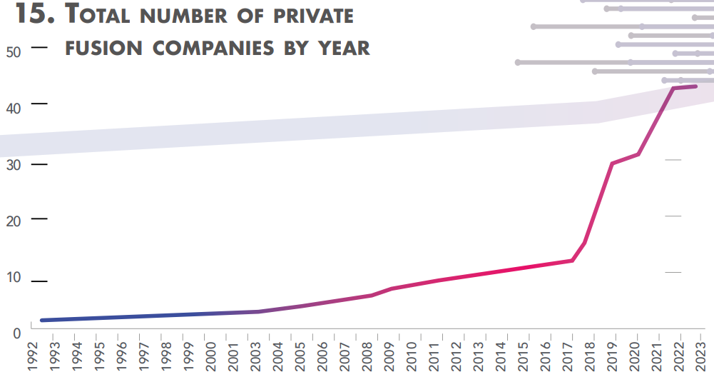 (逐年增长的私营核聚变企业数量,图源:the Fusion Industry Association)