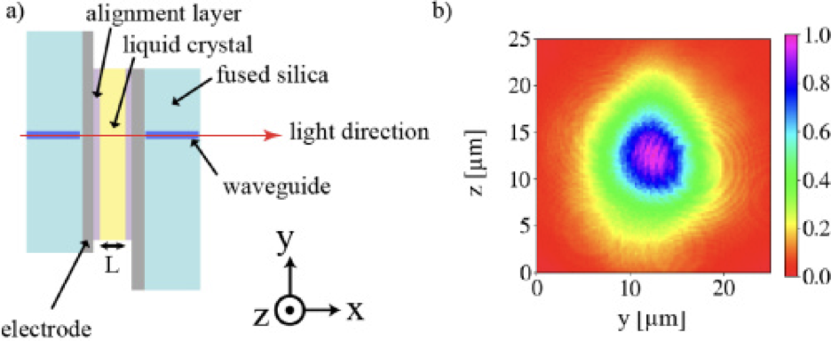 研究团队的突破在于他们对这个问题的创新解决方案。通过在波导中嵌入一层液晶,使得对光的极化达到了前所未有的控制水平,通过外部施加的电场进行控制。这种方法利用了液晶的双折射特性——这些材料可以改变光的偏振方向。研究人员在波导中新颖地使用液晶,可以动态调整光的特性,克服了之前FLDW技术的重构性限制。