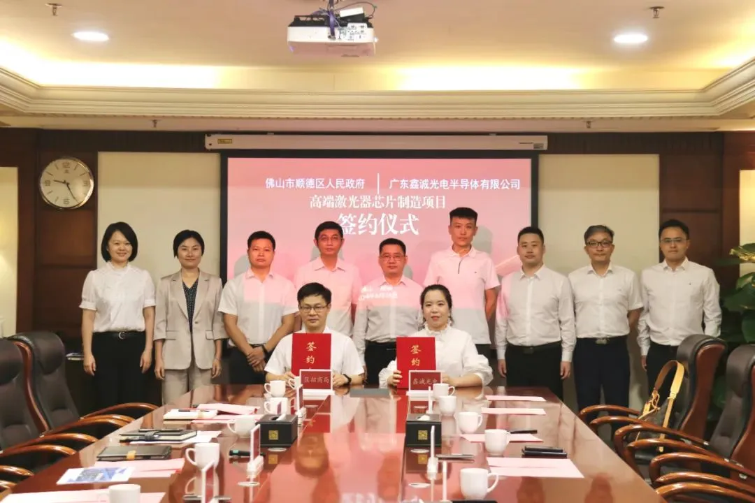 6月24日,广东鑫诚光电半导体有限公司与佛山市顺德区政府签约,标志着高端激光器芯片项目正式落地顺德陈村。