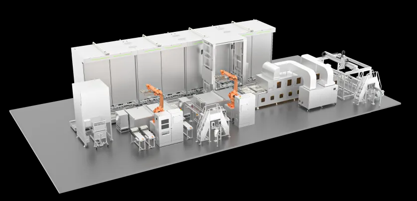 此外,电芯预热、真空干燥等环节都是高耗能工序。在降低能耗的关键举措上,海目星在冷却系统上搭载了冷风自循环系统,减少冷却源的能耗使用。同时,通过优化工艺配方,内置发热板等举措,减少腔体、夹具的散热,电能有效利用率大幅提升,整线能耗相较于传统干燥线降低20%以上。