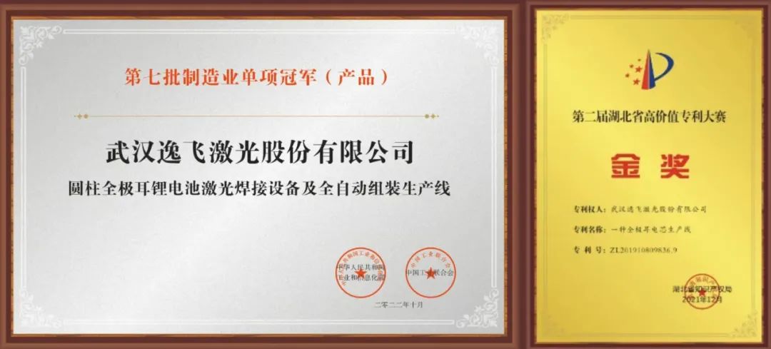 逸飞激光深耕圆柱全极耳电池装备领域15年,自主创新核心技术,率先突破圆柱全极耳电池制造工艺与装备技术难题,推出圆柱全极耳电芯装配系列设备,具备高效率、高良率、高智能化等优势,成为众多头部电池企业和车企的首选,入选国家级制造业单项冠军产品。
