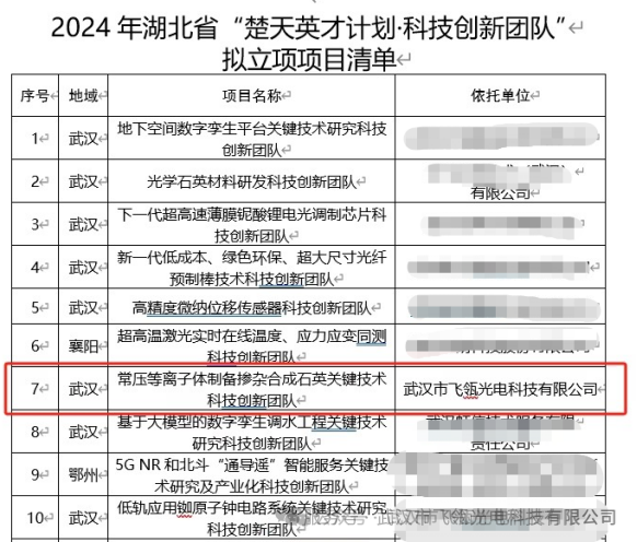 飞瓴光电荣获2024年湖北省“楚天英才-科技创新团队”