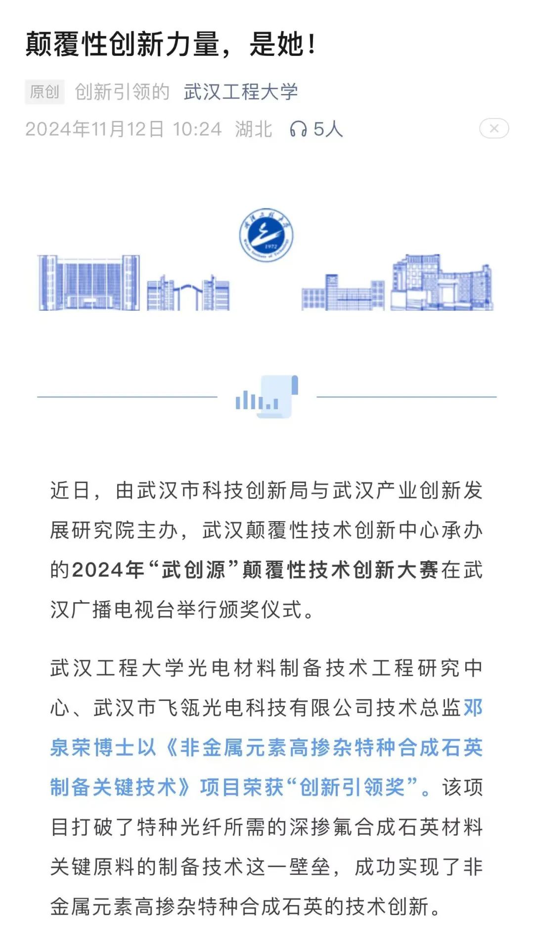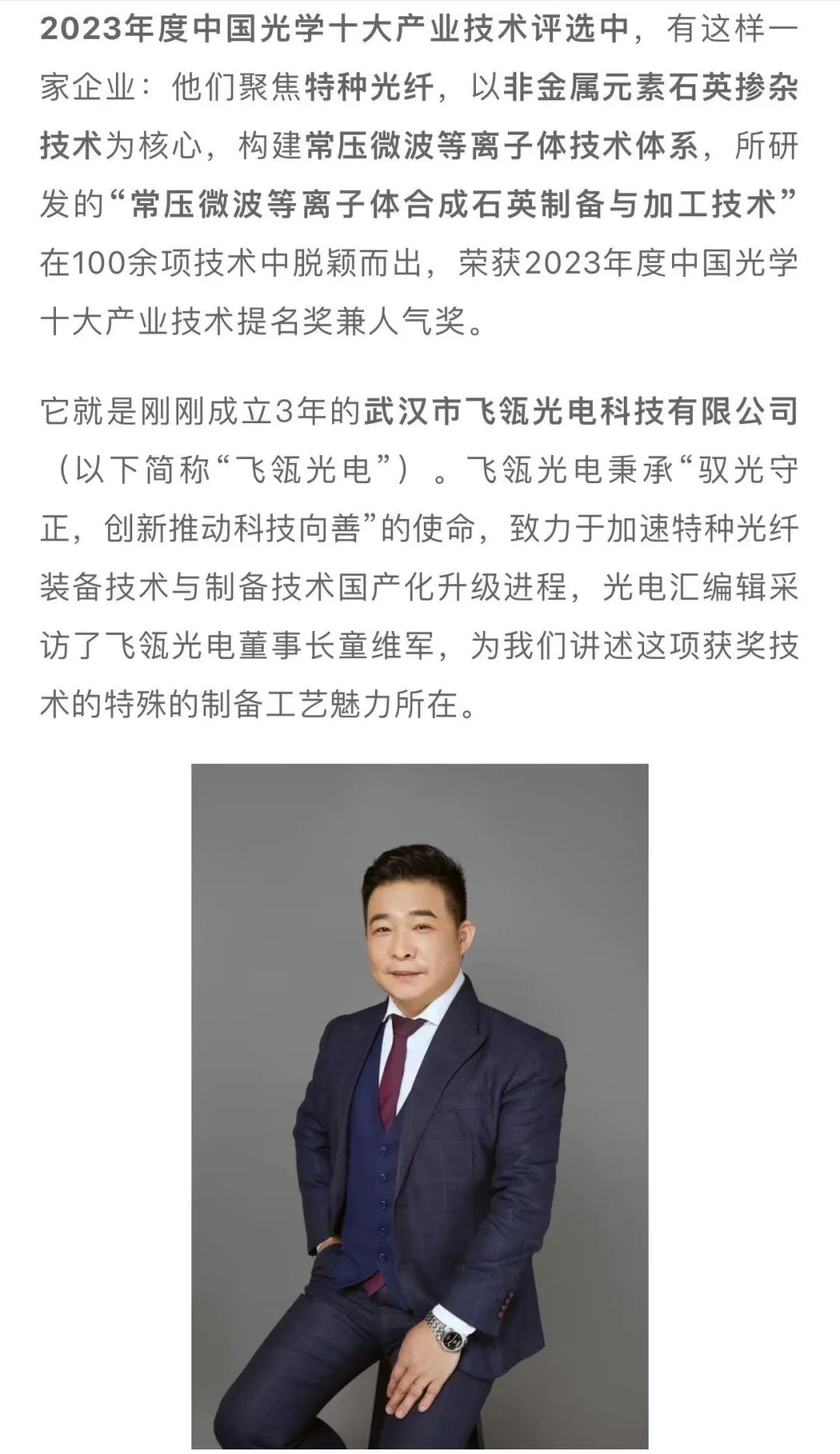 光电汇《飞瓴光电:独辟蹊径,特种光纤制备技术新定义》