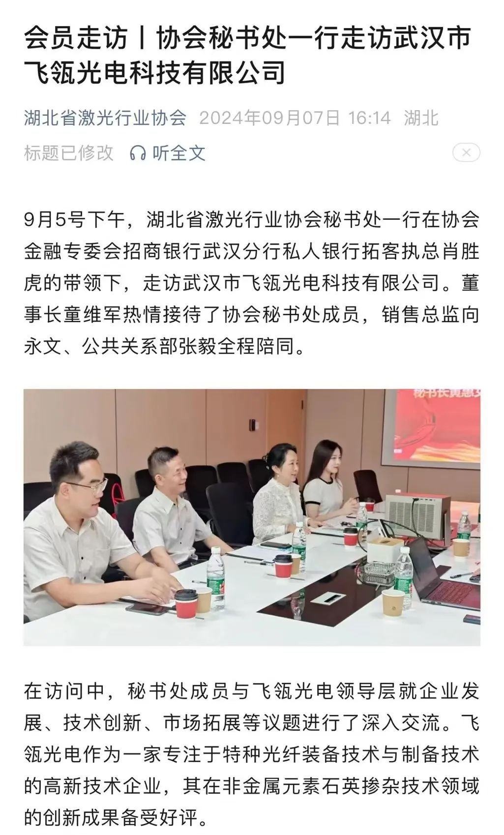 湖北省激光协会《会员走访丨协会秘书处一行走访武汉市飞瓴光电科技有限公司》