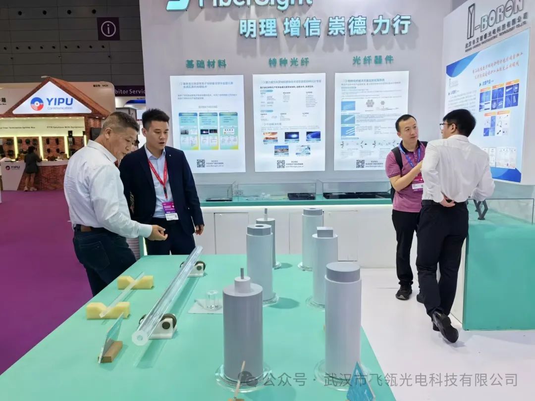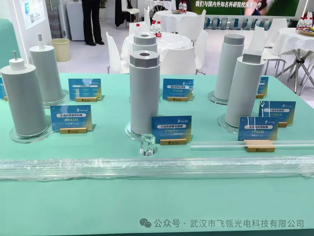 展示的红外/紫外掺氟预制棒、无源波导信号光纤预制棒,所拉制的光纤可应用于通信、工业、医疗等多个领域的光纤激光器或器件,高硼硅玻璃管、八边形石英套管、高功率石英保护镜片等产品,经过几何尺寸自动精准反馈在线控制, 产品性能达到先进水平。