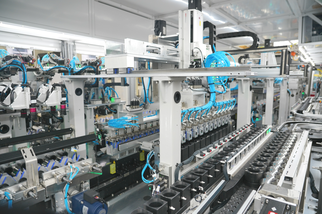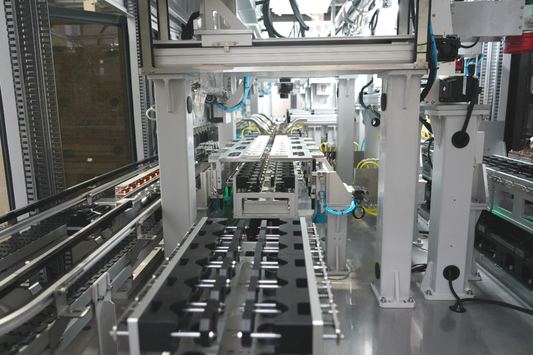 ⊙ 电芯与结构件装配线通过自动物流一体化对接,高效智能组装