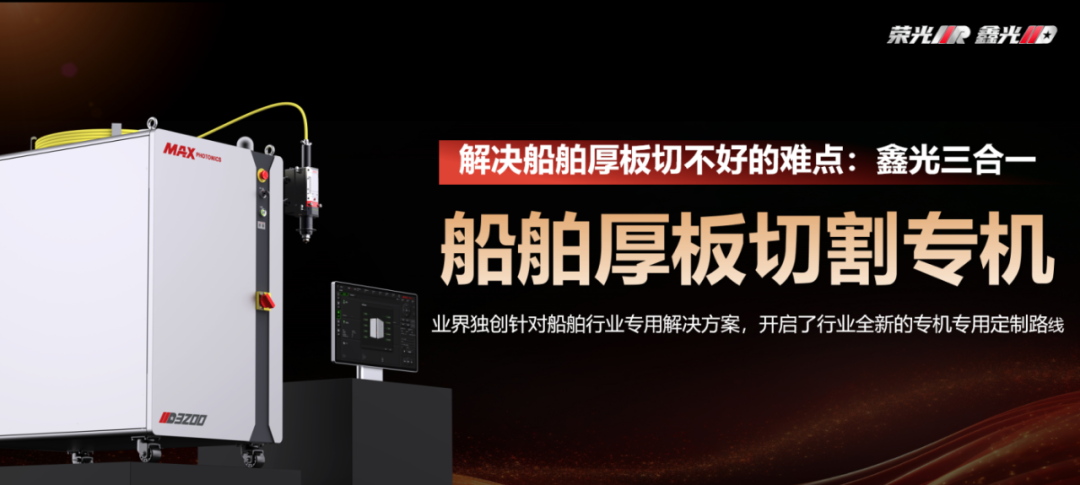 创鑫激光深刻洞察行业需求,推出业界独创的船舶专用机——鑫光XG3200三合一,该产品将激光器、激光切割头、控制系统三大核心部件深度集成与协同优化,实现了“1+1+1 > 3”的能效飞跃。它不仅代表了高功率激光技术发展的新高度,更是为船舶海工领域的厚板加工提供了前所未有的高效、高质、高稳定性的选择。
