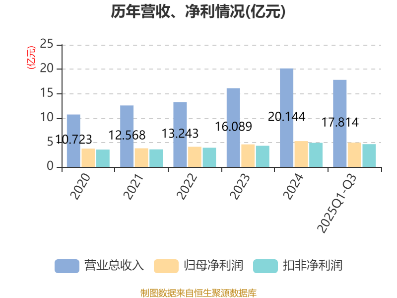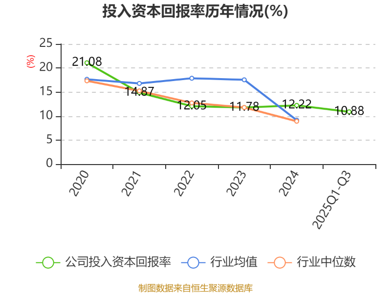 盈利能力方面, 2025年前三季度公司加权平均净资产收益率为13.46%,同比上升1.44个百分点。公司2025年前三季度投入资本回报率为10.88%,较上年同期上升1.89个百分点。