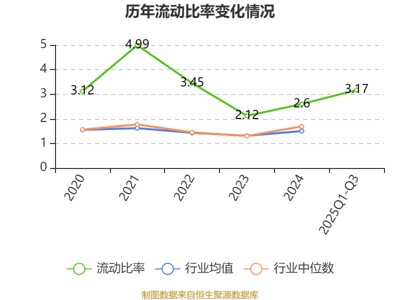 2025年前三季度,公司流动比率为3.17,速动比率为2.32。